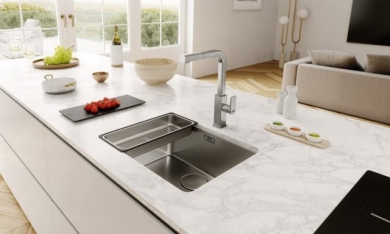 El nuevo fregadero de Franke está disponible en dos versiones: acero inoxidable y Fragranite, un material de alta resistencia que se adapta a las exigencias de cualquier cocina. Este fregadero ha sido diseñado para afrontar los desafíos del uso diario, con una robustez que garantiza un excelente comportamiento frente al uso intensivo y una larga durabilidad.